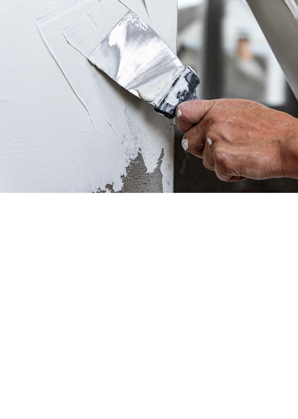 Ik ontdekte dat het gros van de korrels zich het beste liet verwijderen met een verfkrabber. Vijfentwintig vierkante meter muur ontkorrelde ik en had daar twee krabbers voor nodig, omdat de eerste halverwege de klus al kaal versleten was. Het mag raar klinken, maar ik had plezier in dit karweitje. Toch was de muur me na al het krabben nog niet strak genoeg. Licht speurwerk op het www hielp me verder. Ik ontdekte er de stucpasta van Knauf. Praxis stond vooraan in de zoekresultaten, dus daar ging ik heen. Pas later ontdekte ik dat hetzelfde product bij Hornbach bijna tien procent minder kost.